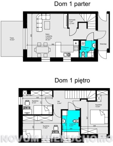 - unikalna zabudowa – każdy dom z własnym parterem i piętrem