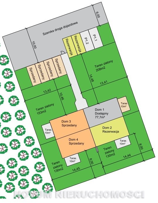 - otoczenie nowych domów oraz terenów zielonych – zachodnia część działki graniczy z gęstą zielenią
