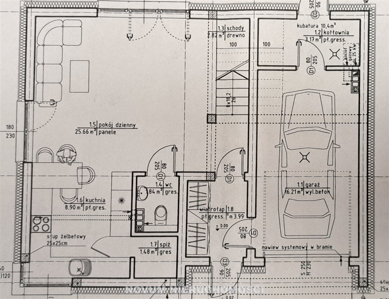• Cena dotyczy stanu surowego zamkniętego ( ocieplenie zew, tynk zew. drzwi zew, brama garażowa z napędem, okna 3 szybowe w tym dwa przesuwne )