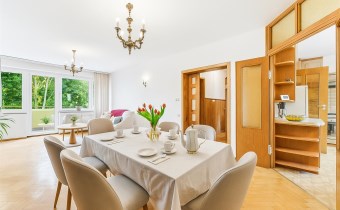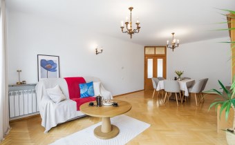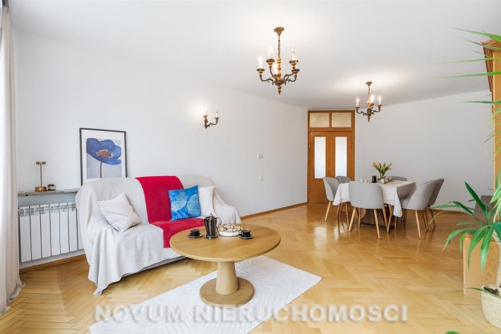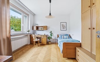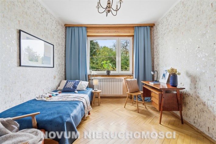 Na ścianach tynki i gładzie w dobrym stanie, podłogi drewniane, zadbana stolarka drzwiowa.