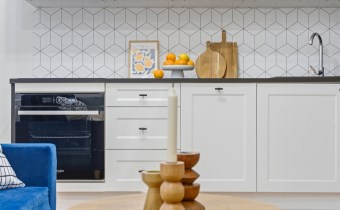 • Salon z aneksem kuchennym – przestronny i wysoki, z możliwością komfortowego wykorzystania dodatkowej przestrzeni.